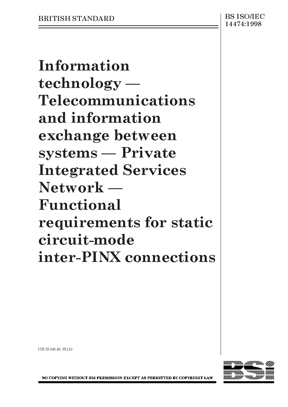 Information technology. Telecommunications and information exchange between systems. Private integrated services network. Functional requirements for static circuit-mode inter-PINX connections