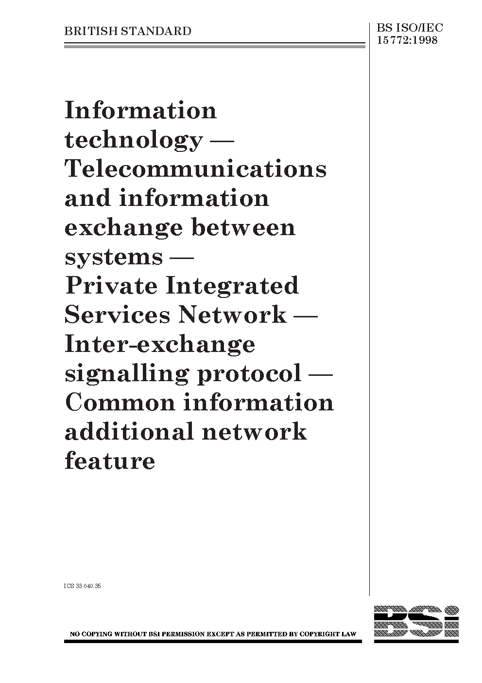 Information technology. Telecommunications and information exchange between systems. Private integrated services network. Inter-exchange signalling protocol. Common information additional network feature