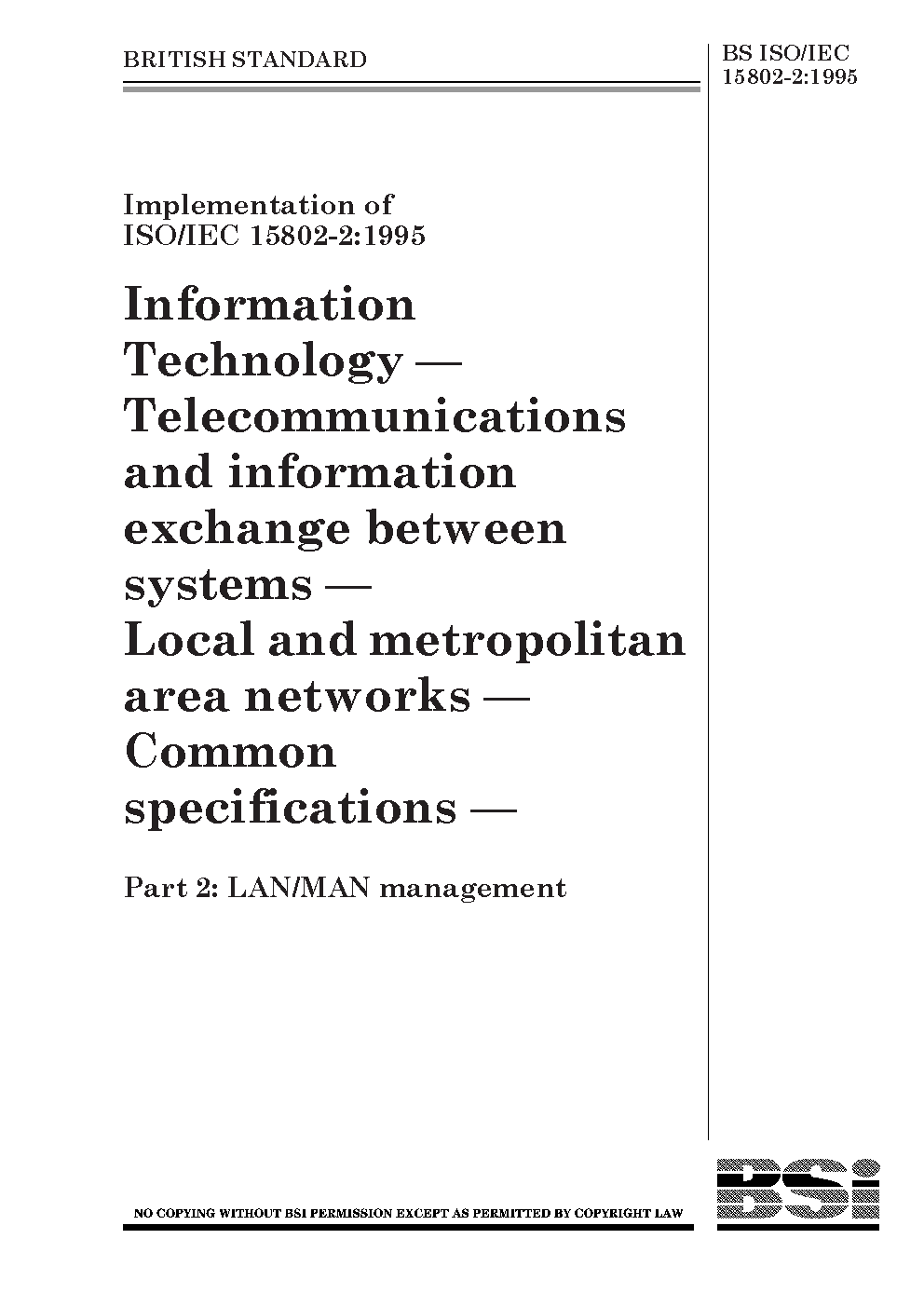 Information technology. Telecommunications and information exchange between systems. Local metropolitan area networks. Common specifications LAN/MAN management