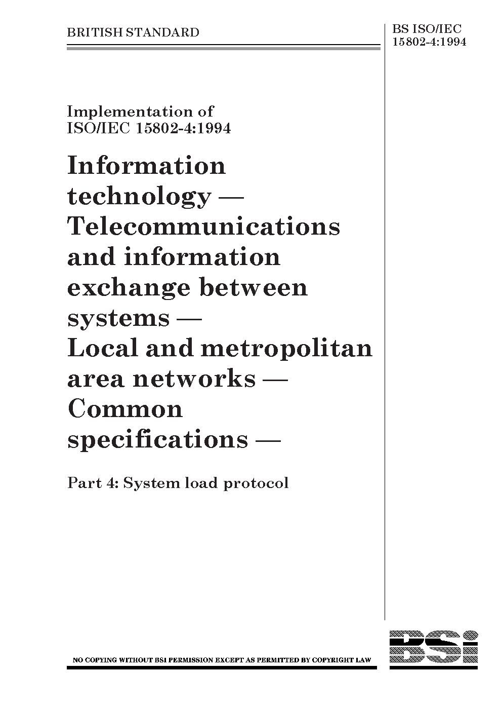 Information technology. Telecommunications and information exchange between systems. Local metropolitan area networks. Common specifications System load protocol