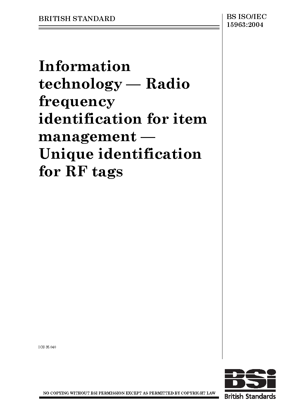 Information technology. Radio frequency identification for item management. Unique identification for RF tags