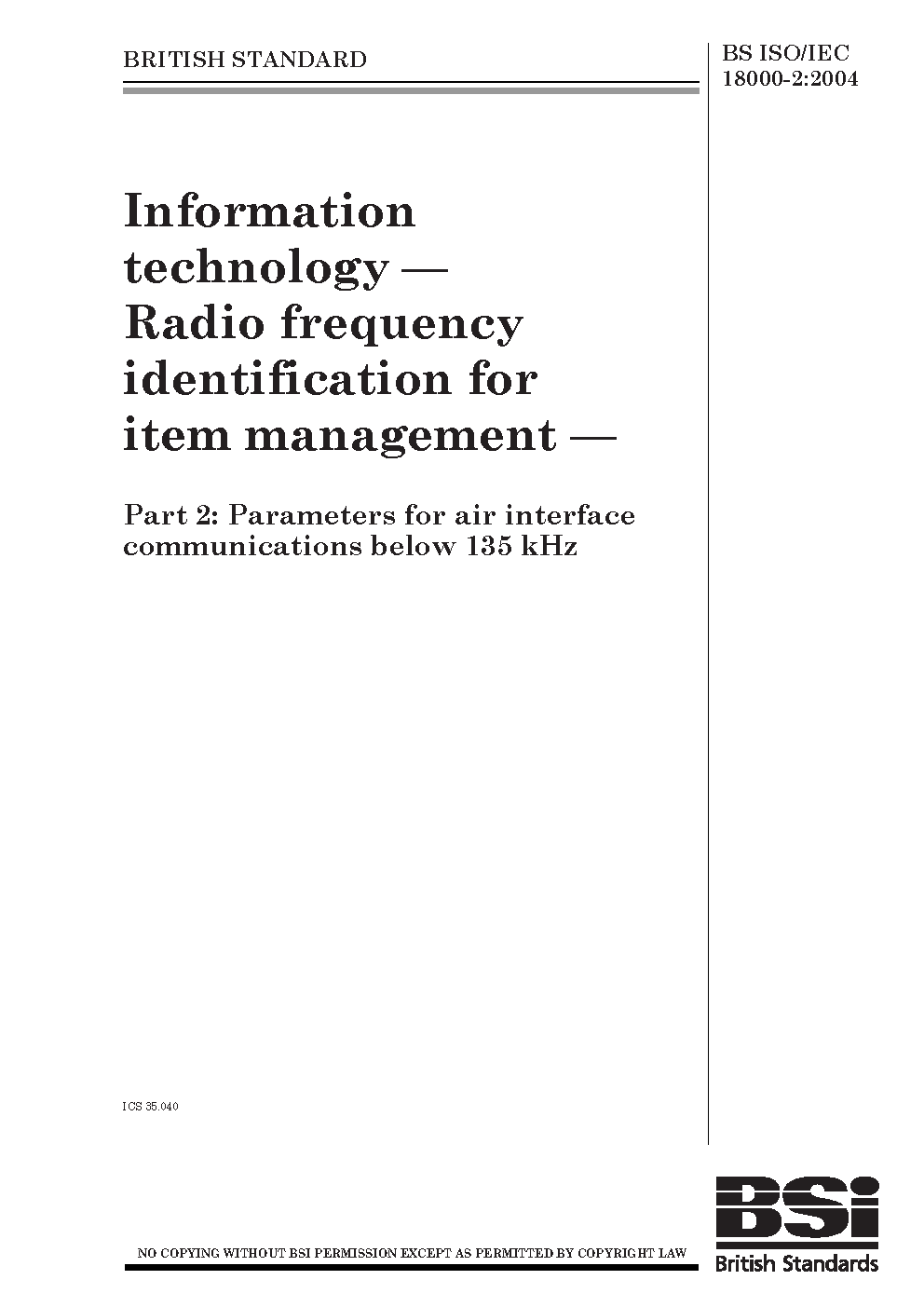 BS ISO/IEC 18000-2:2009