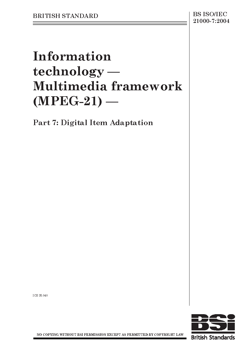 Information technology. Multimedia framework (MPEG-21) Digital item adaptation