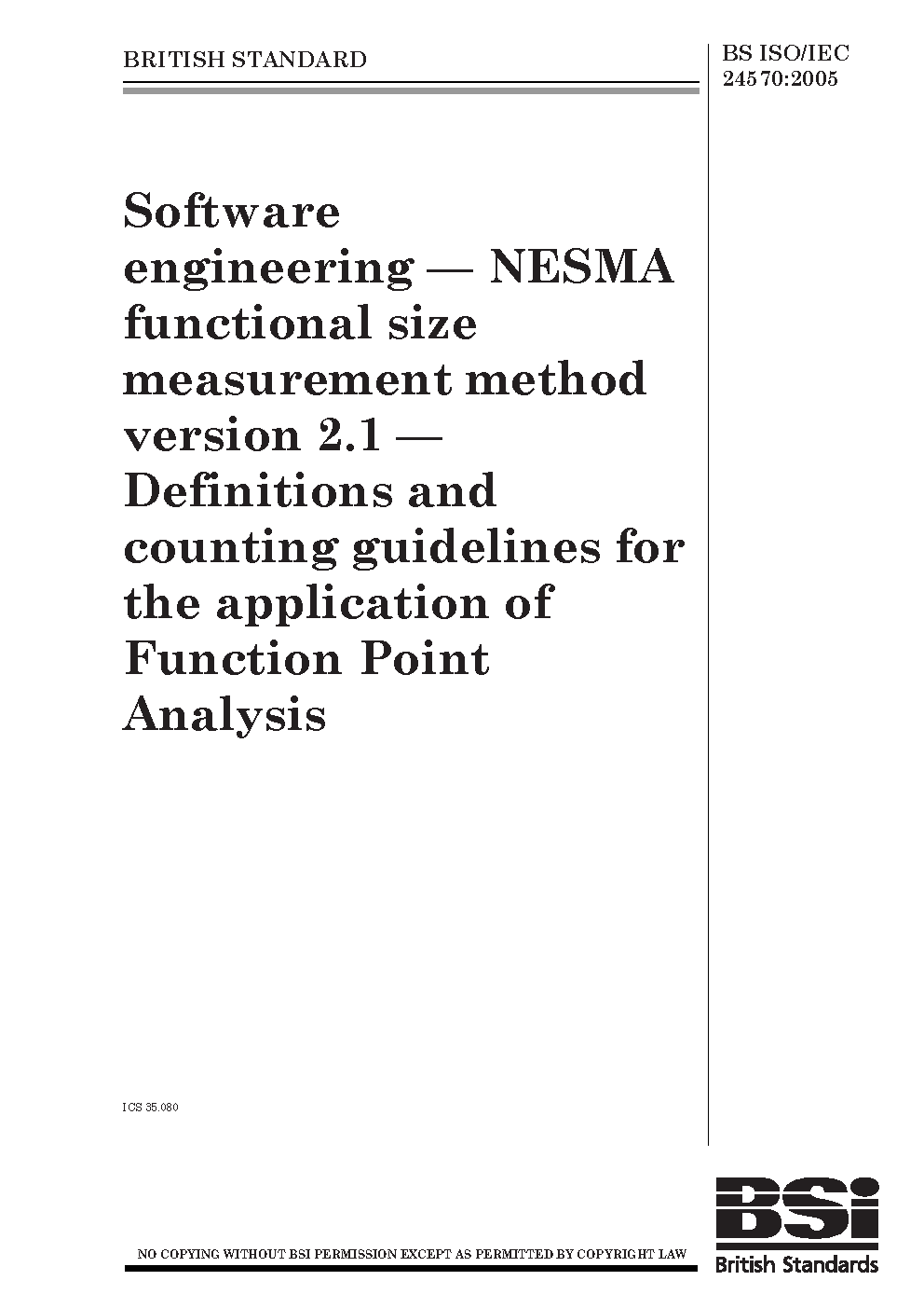 Software engineering. NESMA functional size measurement method. Definitions and counting guidelines for the application of function point analysis