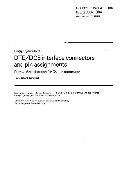 Information technology. Telecommunications and information exchange between systems. 34-pole DTE/DCE interface connector mateability dimensions and contact number assignments