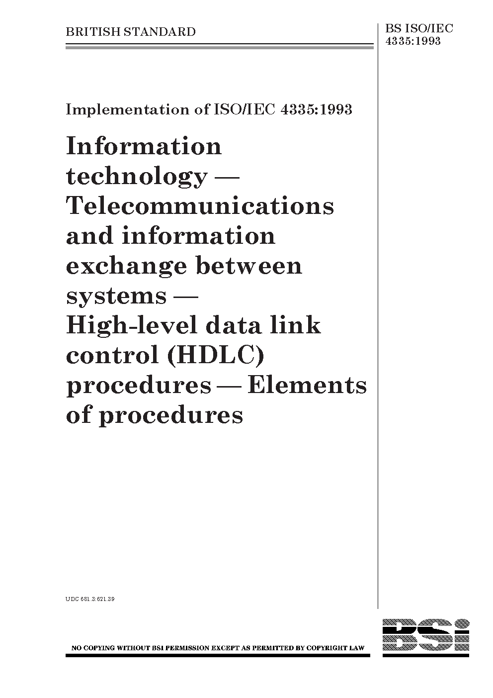 Information technology. Telecommunications and information exchange between systems. High level data link control (HDLC) procedures. Elements of procedures
