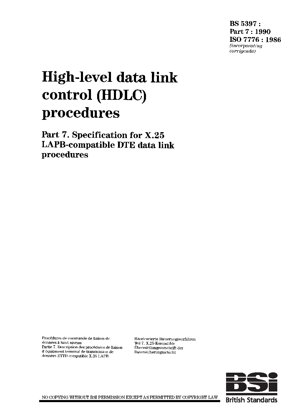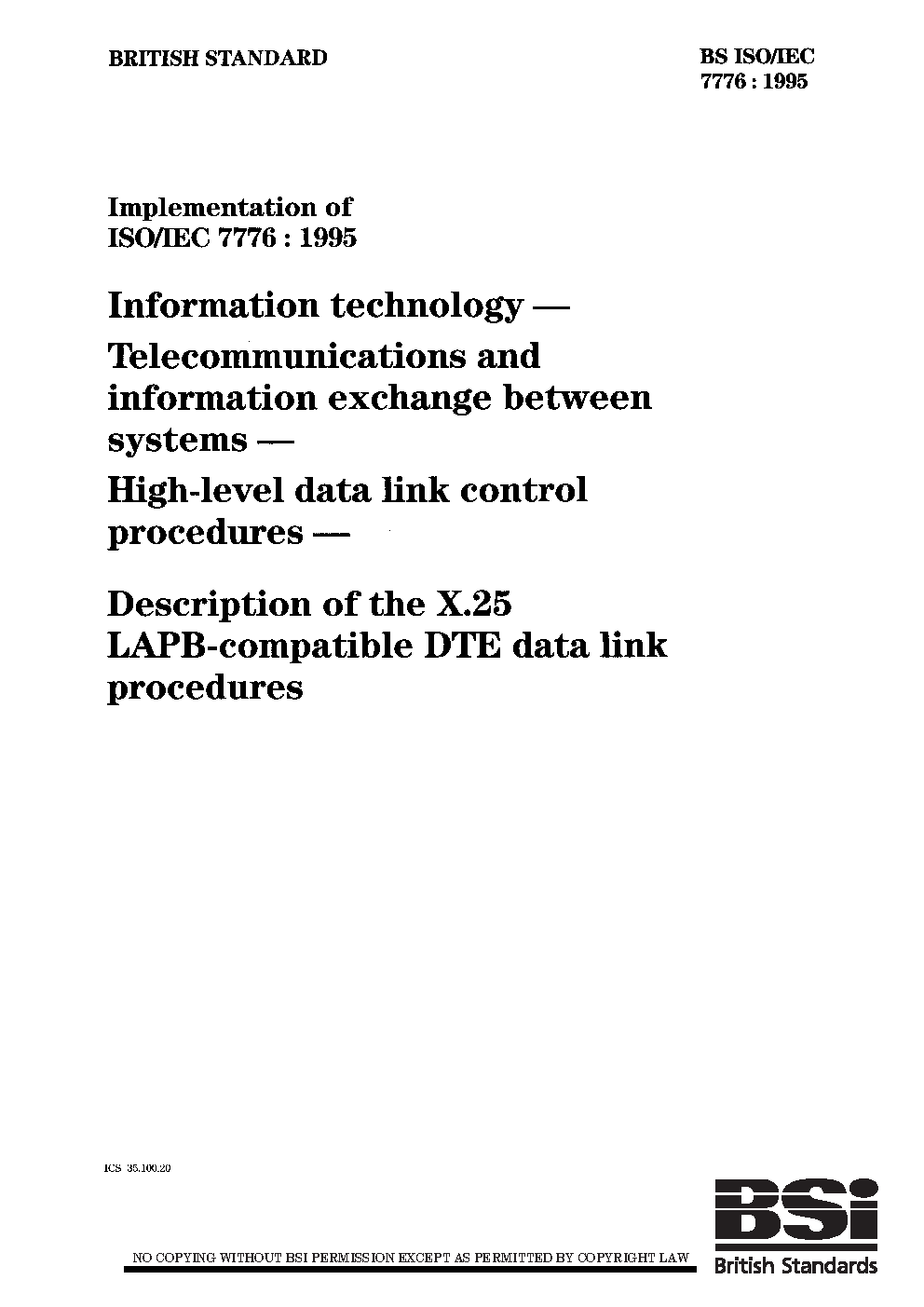 Information technology. Telecommunications and information exchange between systems. High-level data link control procedures. Description of the X.25 LAPB-compatible DTE data link procedures