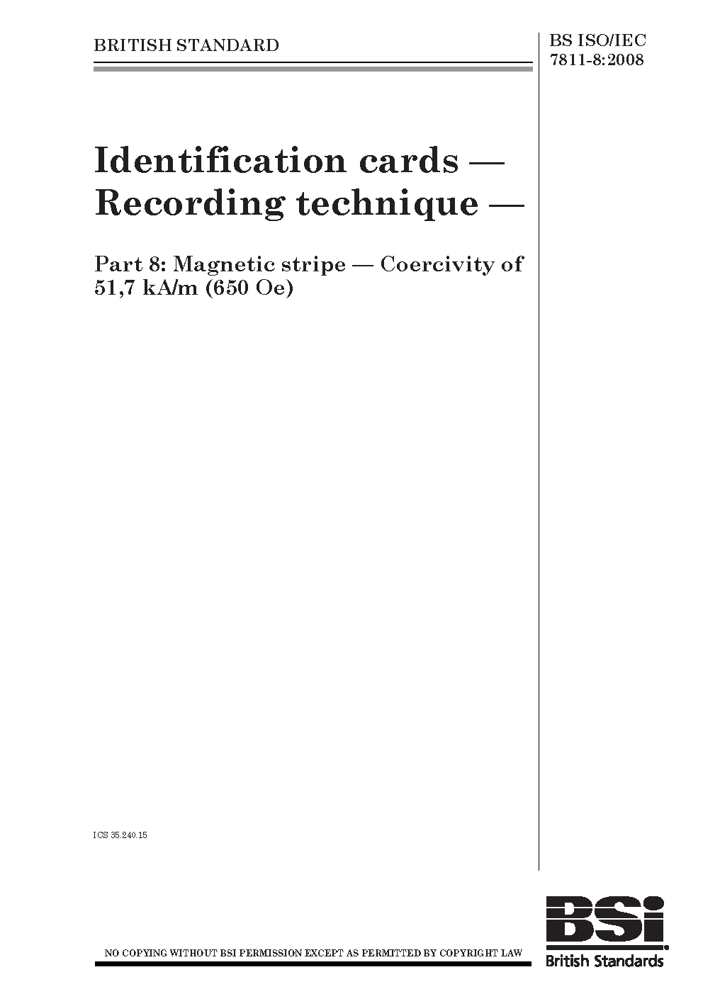 BS ISO/IEC 7811-8:2014