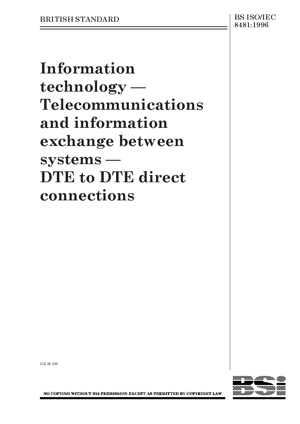 Information technology. Telecommunications and information exchange between systems. DTE to DTE direct connections