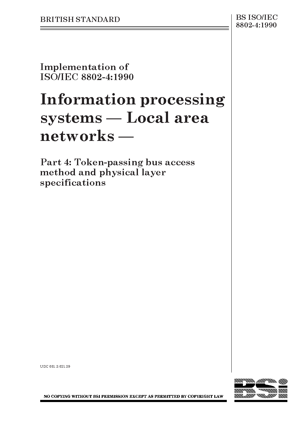 BS ISO/IEC 8802-4:1990