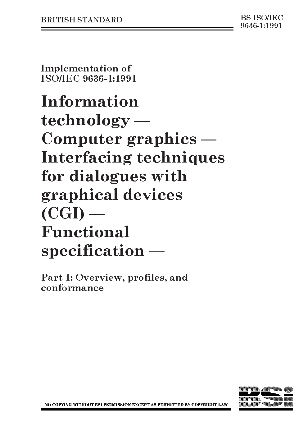 Information technology. Computer graphics. Interfacing techniques for dialogues with graphical devices (CGI). Functional specification Overview, profiles, and conformance