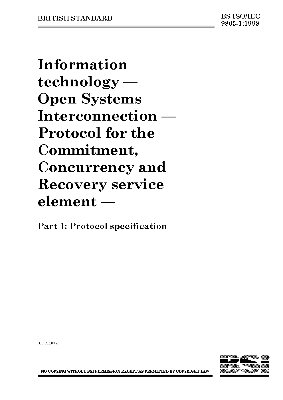 Information technology. Open systems interconnection. Protocol for the commitment, concurrency and recovery service element specification