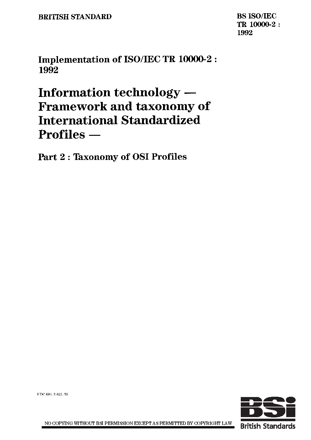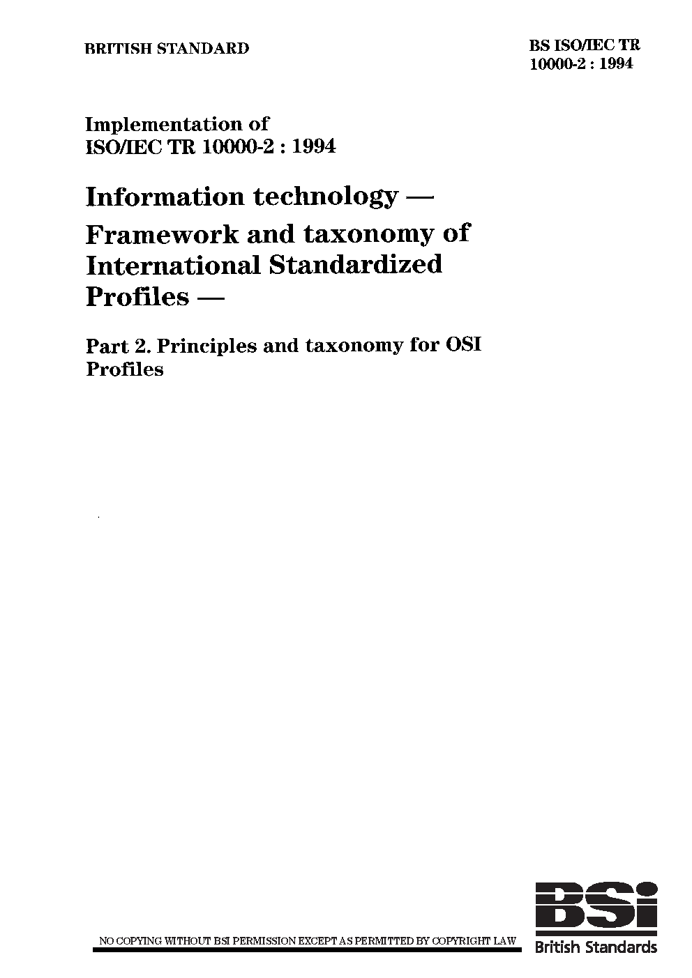 Information technology. Framework and taxonomy of international standardized profiles Principles for OSI