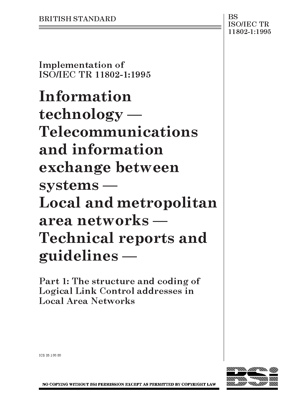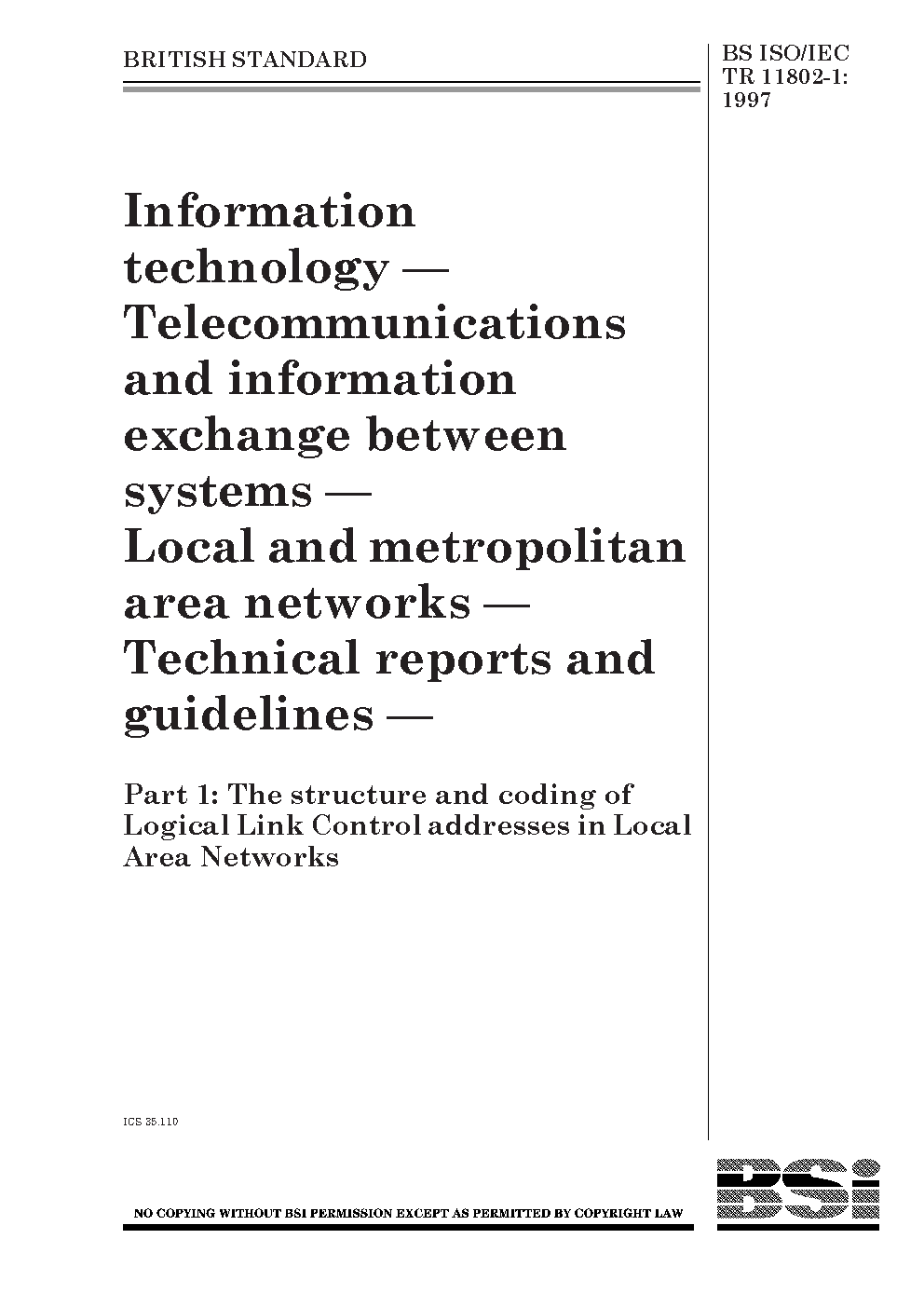 BS ISO/IEC TR 11802-1:1997
