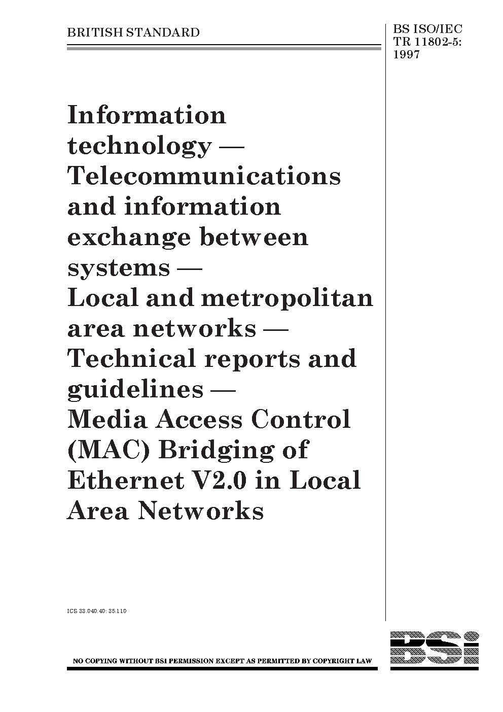 Information technology. Telecommunications and information exchange between systems. Local metropolitan area networks.Technical reports guidelines Media access control (MAC) bridging of Ethernet V2.0 in Area Networks