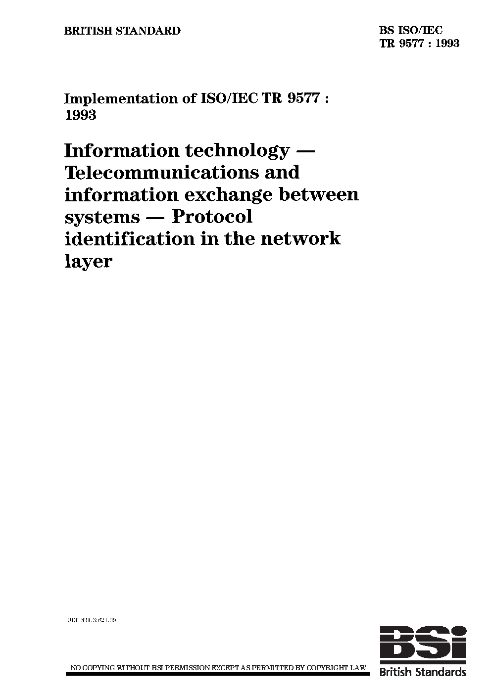 Information technology. Telecommunications and information exchange between systems. Protocol identification in the network layer
