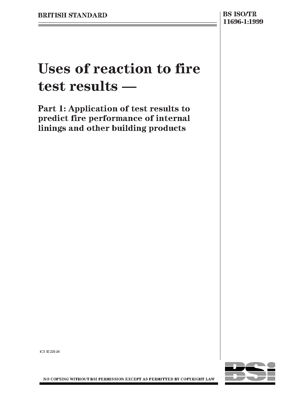 Uses of reaction to fire test results Application predict performance internal linings and other building products