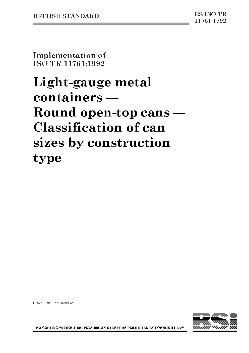 Light-gauge metal containers. Round open-top cans. Classification of can sizes by construction type