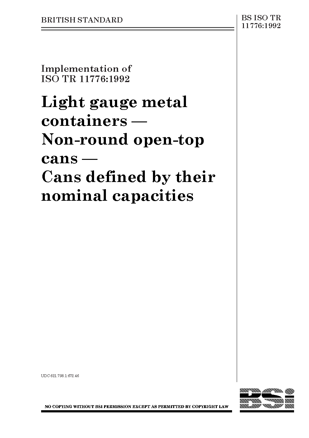 Light gauge metal containers. Non-round open-top cans. Cans defined by their nominal capacities