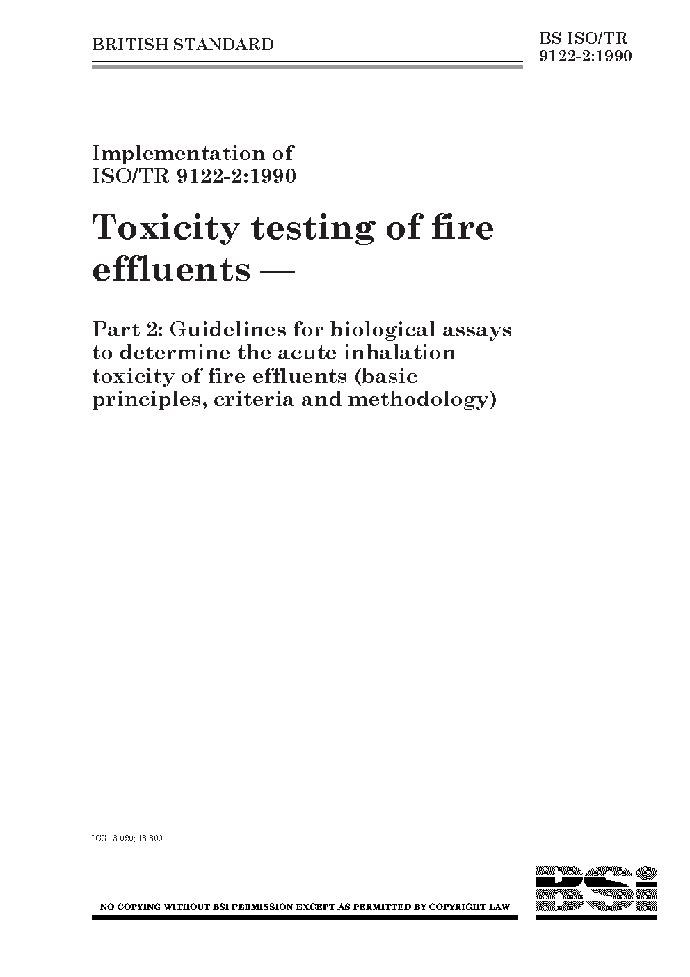 Toxicity testing of fire effluents Guidelines for biological assays to determine the acute inhalation toxicity (basic principles, criteria and methodology