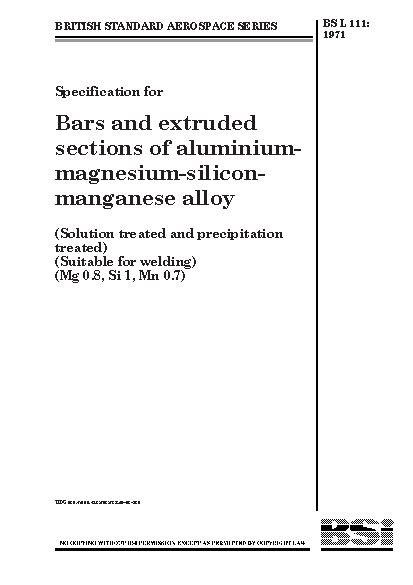 Chemical composition;Precipitation hardening;Magnesium-containing alloys;Mechanical properties of materials;Heat treatment;Metal sections;Hardness;Solution heat treatment;Aluminium alloys;Manganese-containing alloys;Air transport engineering;Silicon-containing alloys;Weldability;Bars (materials);Dimensions