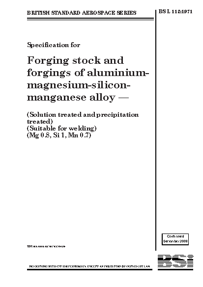 Specification for forging stock and forgings of aluminium-magnesium-silicon-manganese alloy (solution treated and precipitation treated) (suitable for welding) (Mg 0.8, Si 1, Mn 0.7)