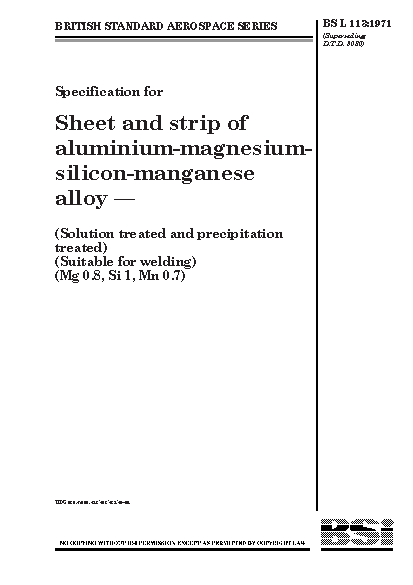 Specification for sheet and strip of aluminium-magnesium-silicon-manganese alloy (solution treated and precipitation treated) (suitable for welding) (Mg 0.8, Si 1, Mn 0.7)