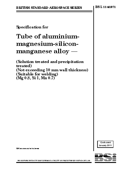 Chemical composition;Solution heat treatment;Pipes;Air transport engineering;Magnesium-containing alloys;Heat treatment;Silicon-containing alloys;Aluminium alloys;Weldability;Manganese-containing alloys;Precipitation hardening;Thickness;Mechanical properties of materials