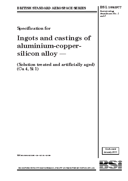 Specification for ingots and castings of aluminium-copper-silicon alloy (solution treated and artificially aged) (Cu 4, Si 1)