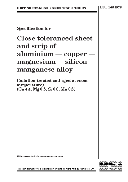Specification for close toleranced sheet and strip of aluminium-copper-magnesium-silicon-manganese alloy (solution treated and aged at room temperature) (Cu 4.4, Mg 0.5, Si 0.8, Mn 0.8)