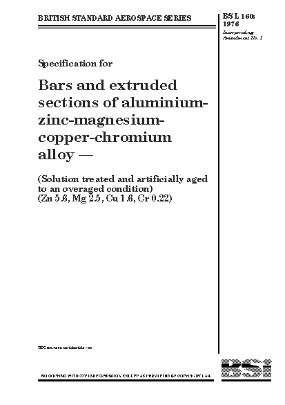 Specification. Bars and extruded sections of aluminium-zinc-magnesium-copper-chromium alloy (solution treated and artificially aged to an overaged condition) (Zn 5.6, Mg 2.5, Cu 1.6, Cr 0.22)