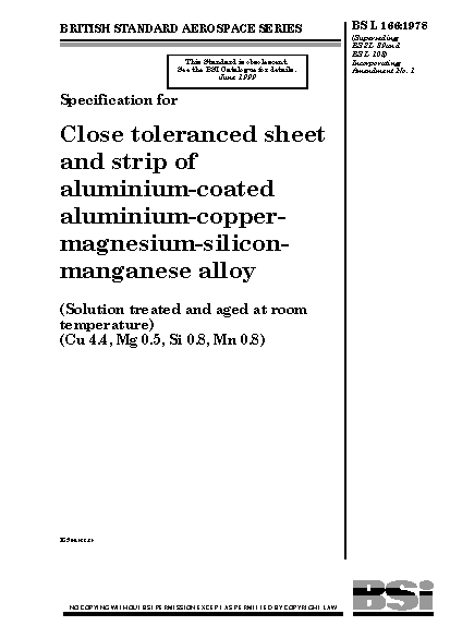 Specification for close toleranced sheet and strip of aluminium-coated aluminium-copper-magnesium-silicon-manganese alloy (solution treated and aged at room temperature) (Cu 4.4, Mg 0.5, Si 0.8, Mn 0.8)