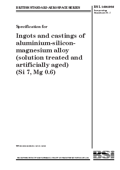 Specification for ingots and castings of aluminium-silicon-magnesium alloy (solution treated and artificially aged) (Si 7, Mg 0.6)