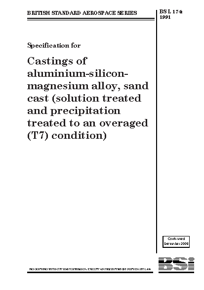 Specification for castings of aluminium-silicon-magnesium alloy, sand cast (solution treated and precipitation treated to an overaged (T7) condition)