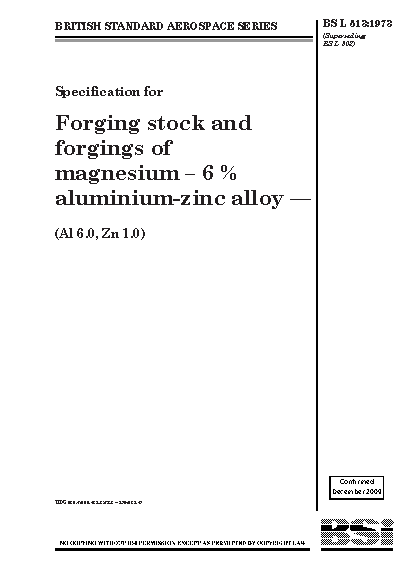 Specification for forging stock and forgings of magnesium-6% aluminium-zinc alloy (Al 6.0, Zn 1.0)