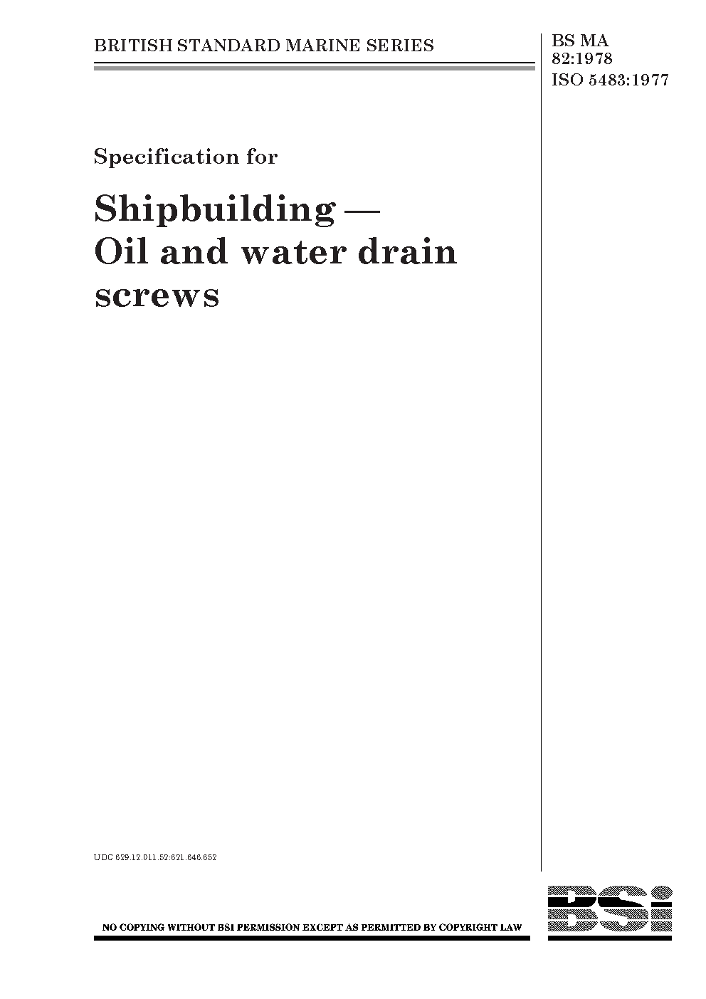 Specification for shipbuilding - oil and water drain screws