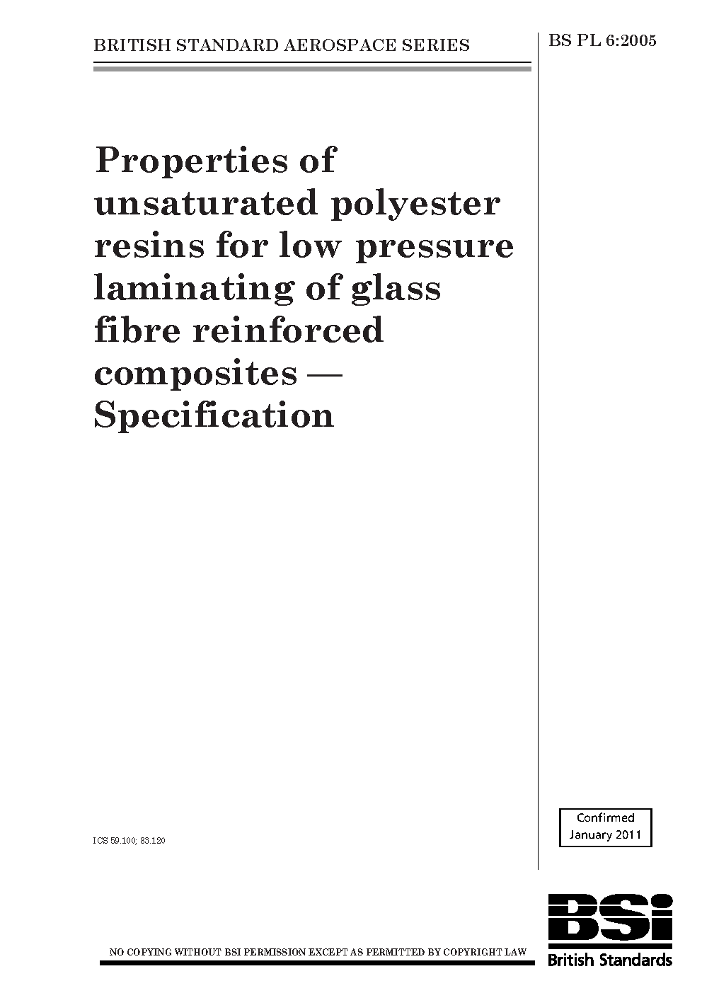 Properties of unsaturated polyester resins for low pressure laminating of glass fibre reinforced composites. Specification