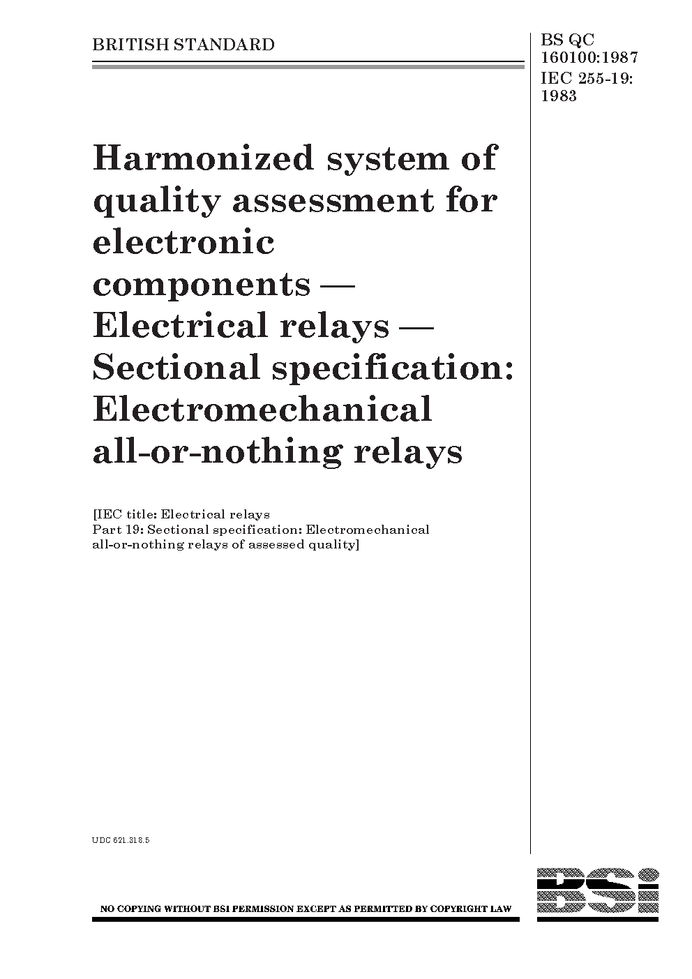 Harmonized system of quality assessment for electronic components. Electrical relays. Sectional specification: electromechanical all-or-nothing relays