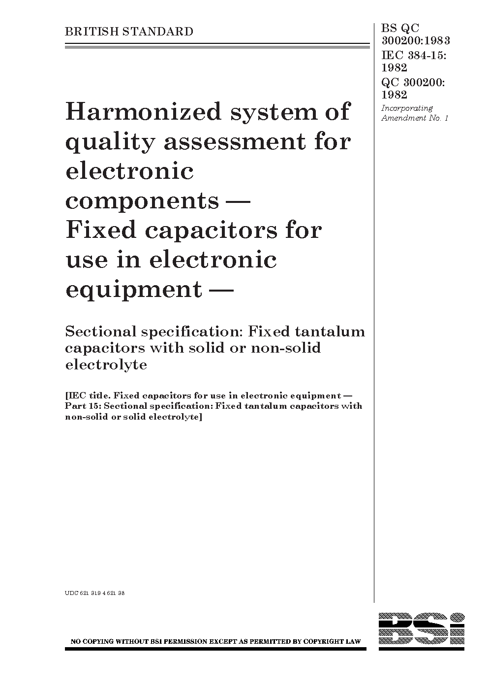 Harmonized system of quality assessment for electronic components. Fixed capacitors for use in electronic equipment. Sectional specification: fixed tantalum capacitors with solid or non-solid electrolyte