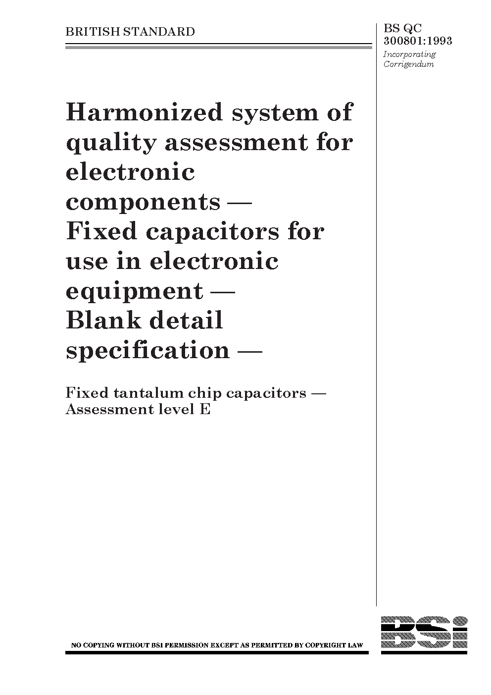 Harmonized system of quality assessment for electronic components. Fixed capacitors for use in electronic equipment. Blank detail specification. Fixed tantalum chip capacitors. Assessment level E