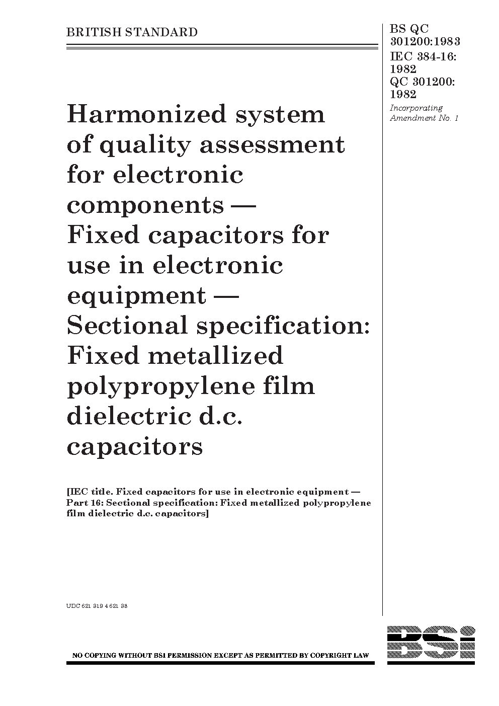 Harmonized system of quality assessment for electronic components. Fixed capacitors for use in electronic equipment. Sectional specification: fixed metallized polypropylene film dielectric d.c. capacitors