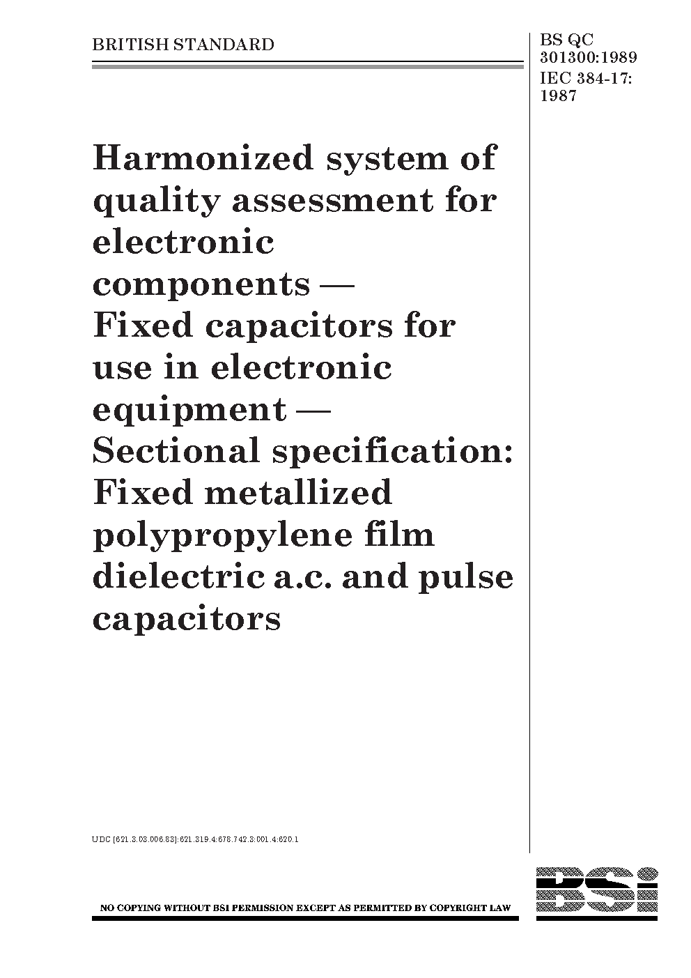 Harmonized system of quality assessment for electronic components. Fixed capacitors for use in electronic equipment. Sectional specification: fixed metallized polypropylene film dielectric a.c. and pulse capacitors