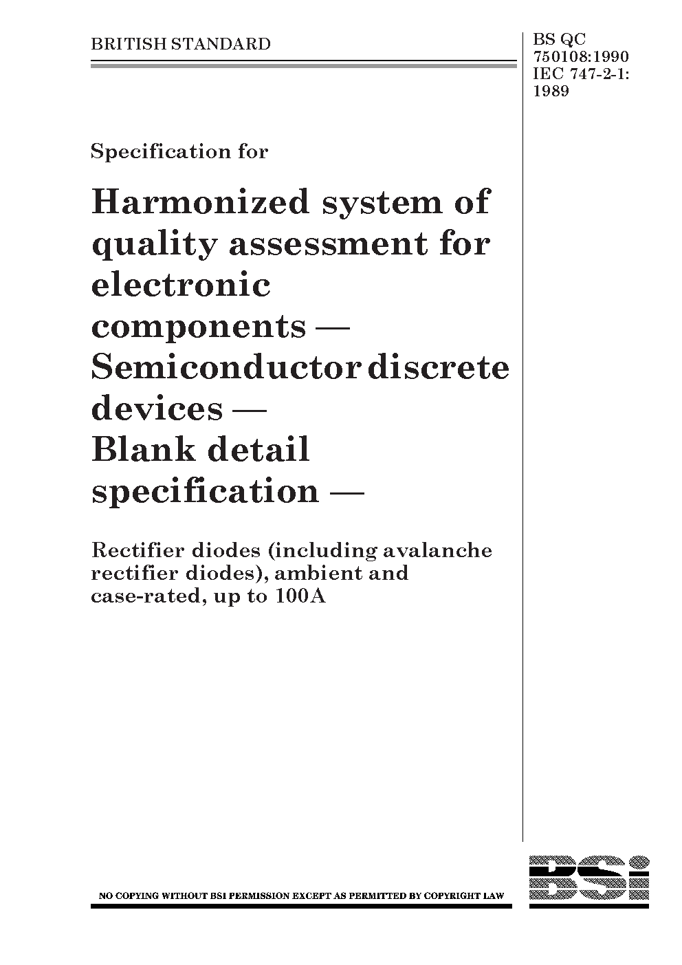Specification for harmonized system of quality assessment for electronic components. Semiconductor discrete devices. Blank detail specification. Rectifier diodes (including avalanche rectifier diodes), ambient and case-rated, up to 100 A