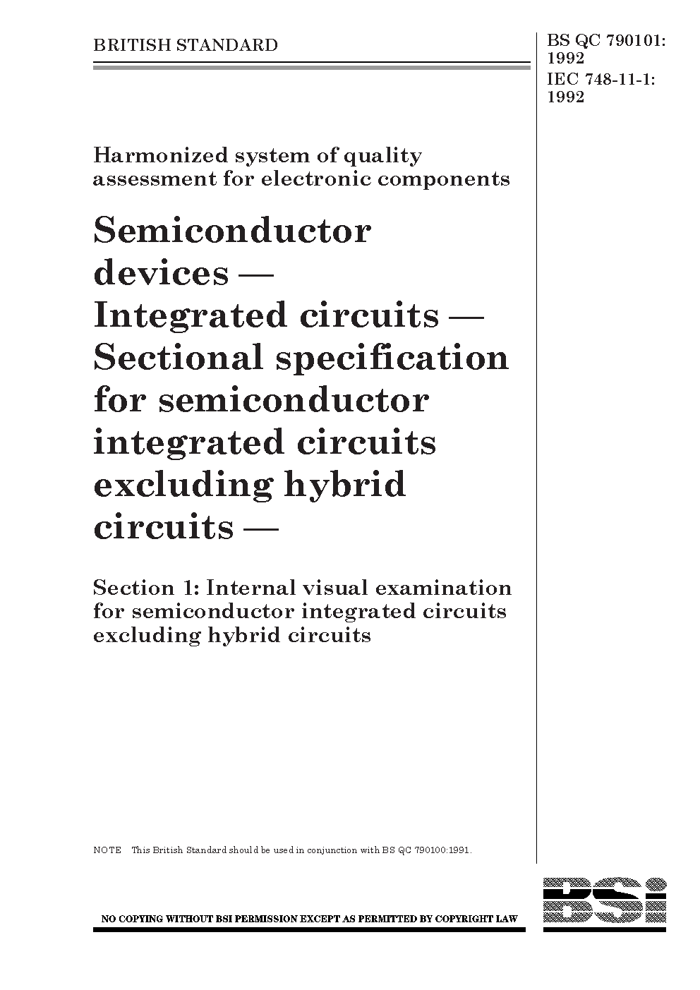 Harmonized system of quality assessment for electronic components. Semiconductor devices. Integrated circuits. Sectional specification for semiconductor integrated circuits excluding hybrid circuits. Internal visual examination for semiconductor integrated circuits excluding hybrid circuits