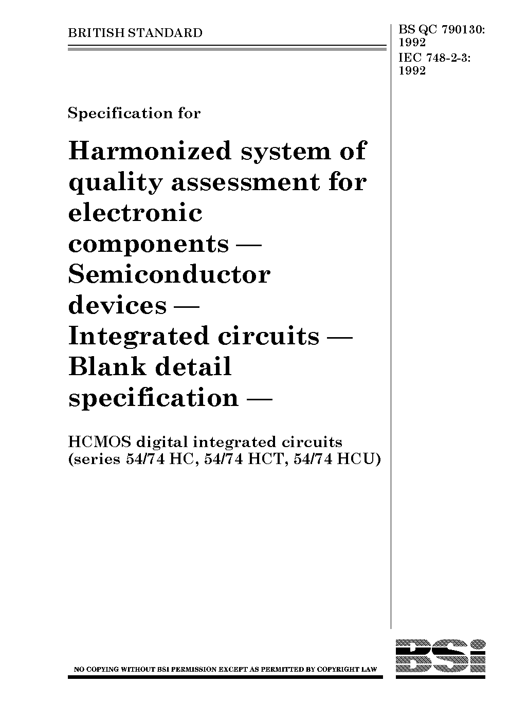 Specification for harmonized system of quality assessment for electronic components. Semiconductor devices. Integrated circuits. Blank detail specification. HCMOS digital integrated circuits (series 54/74 HC, 54/74 HCT, 54/74 HCU)