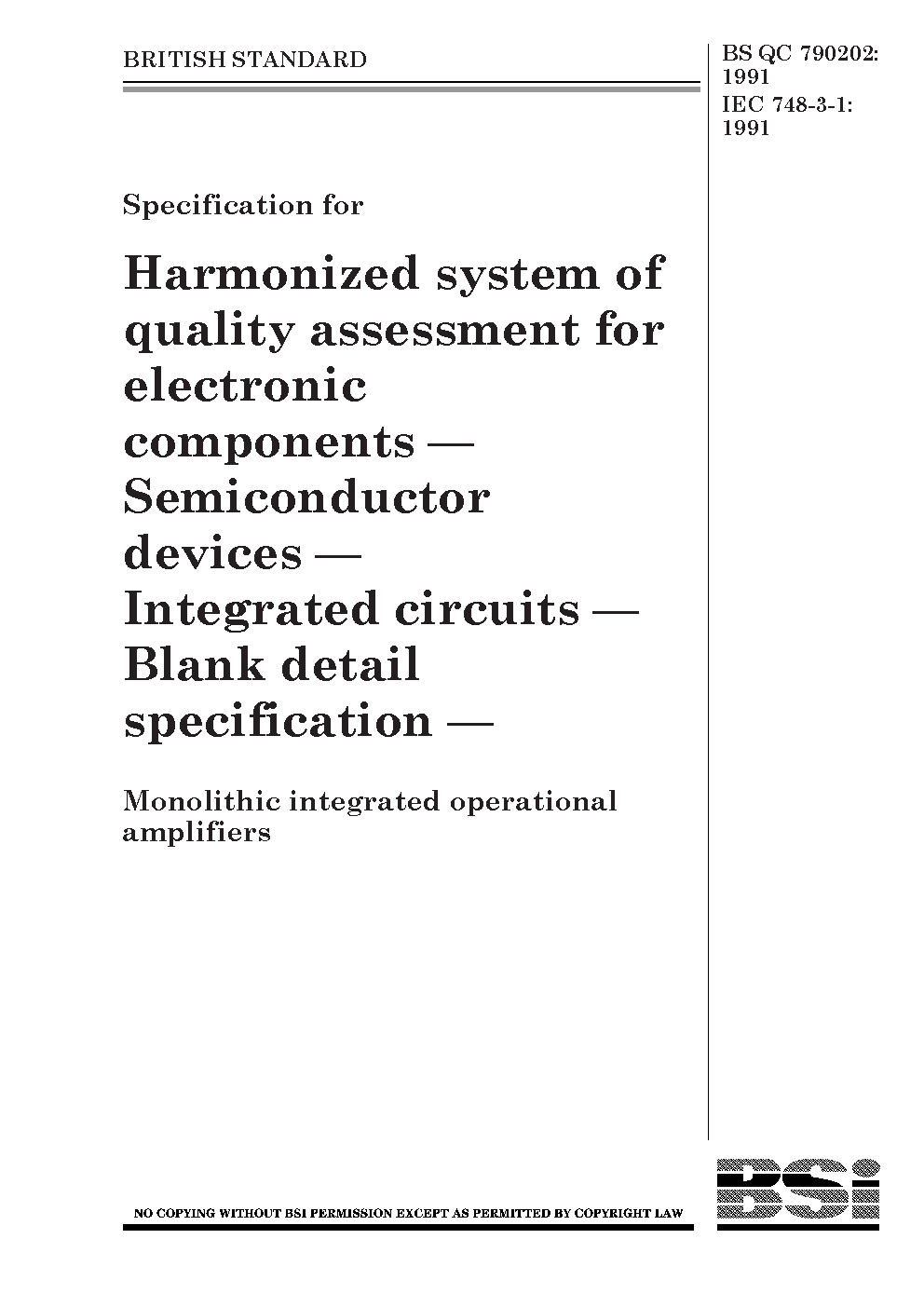 Specification for harmonized system of quality assessment for electronic components. Semiconductor devices. Integrated circuits. Blank detail specification. Monolithic integrated operational amplifiers