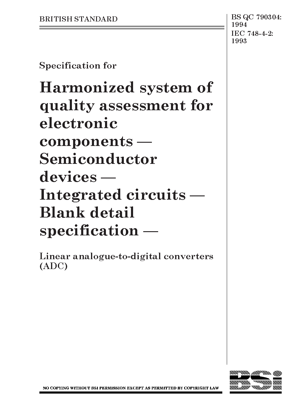 Specification for harmonized system of quality assessment for electronic components. Semiconductor devices. Integrated circuits. Blank detail specification. Linear analogue-to-digital converters (ADC)