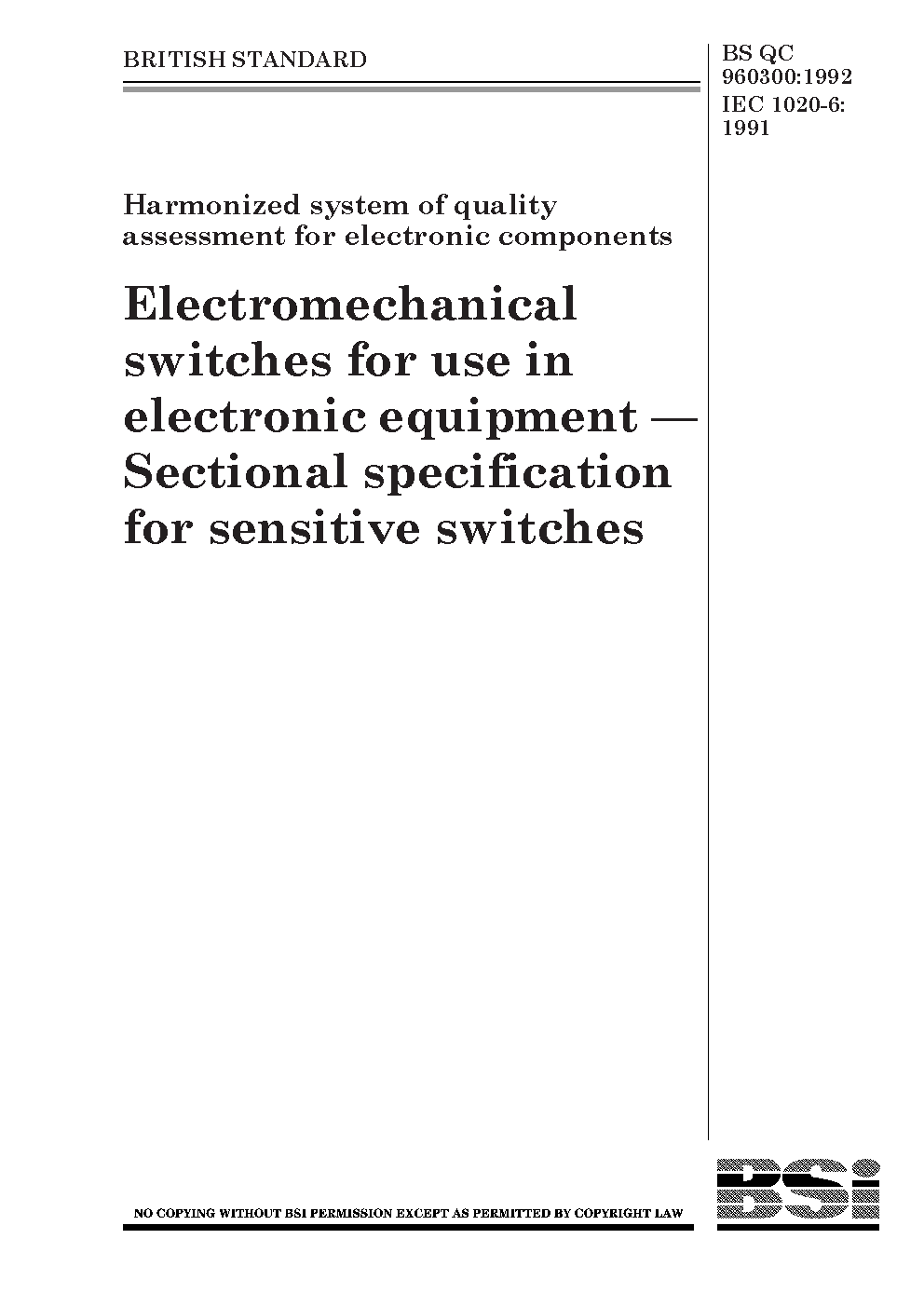 Harmonized system of quality assessment for electronic components. Electromechanical switches for use in electronic equipment. Sectional specification for sensitive switches