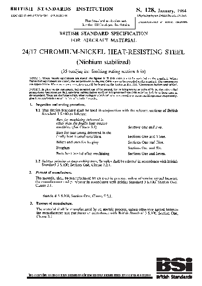 Specification for aircraft material. 24/17 chromium-nickel heat-resisting steel (niobium stabilized) (35 tonf/sq in: limiting ruling section 6 in)
