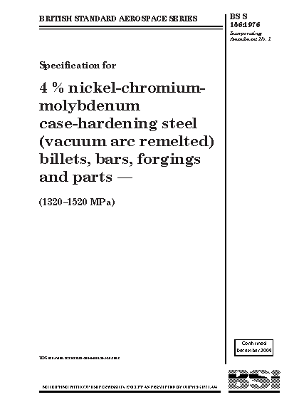 Specification for 4% nickel-chromium-molybdenum case-hardening steel (vacuum arc remelted) billets, bars, forgings and parts (1320-1520 MPa)